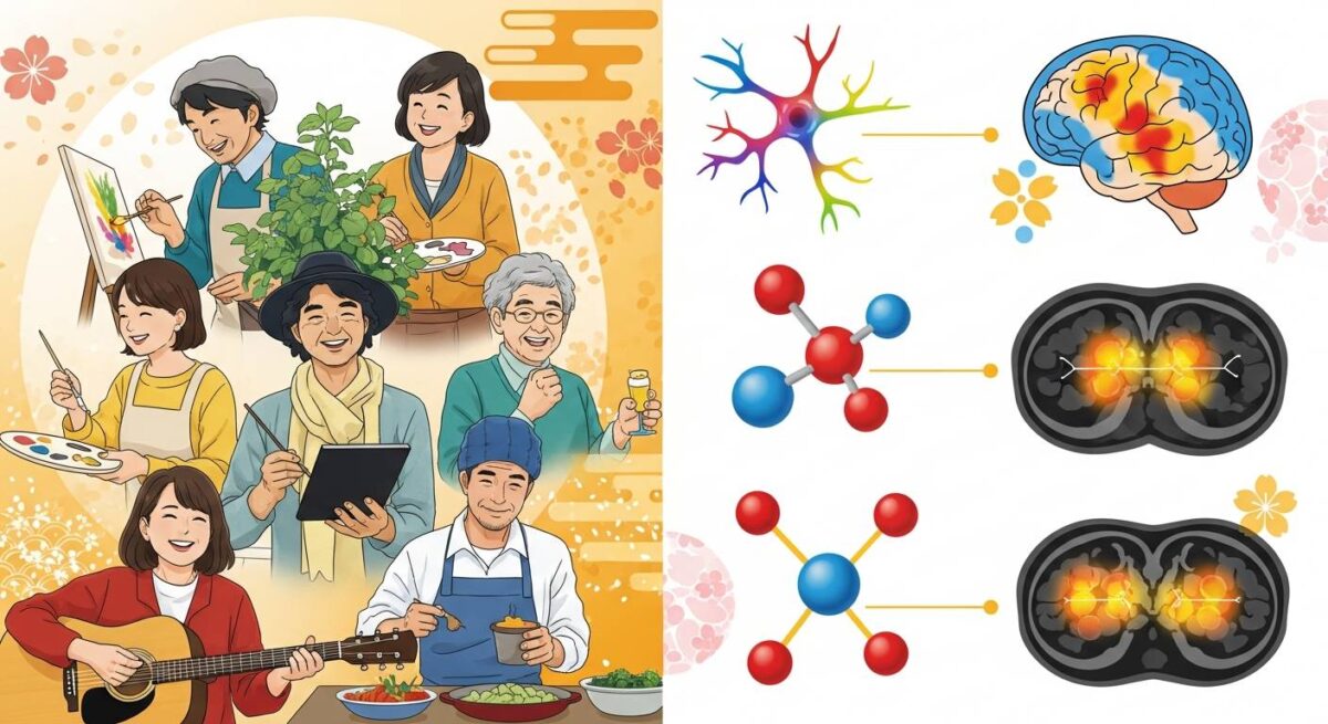 心理学者のマーティン・セリグマン博士は「フロー状態」という没頭体験が脳内の報酬系を活性化させ、ドーパミンやセロトニンといった幸福ホルモンの分泌を促進すると説明しています。編み物や園芸といった創造的な活動は特に効果的で、ロンドン大学の追跡調査では、こうした趣味を持つ高齢者の認知機能低下リスクが最大50%減少したという結果も出ています。