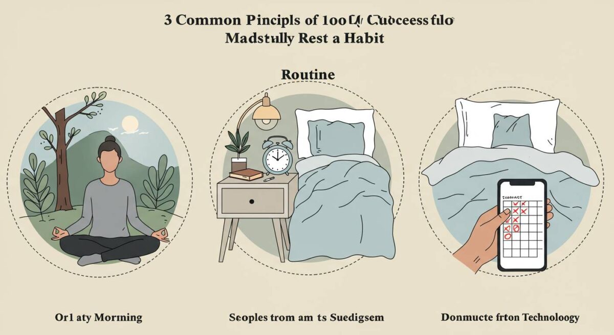 さらに温度管理も習慣化の鍵です。アメリカ睡眠財団の調査によれば、理想的な寝室温度は18~20度。調査対象者の89%が寝る1時間前にエアコンを調節し、体温が下がりやすい環境を整えています。